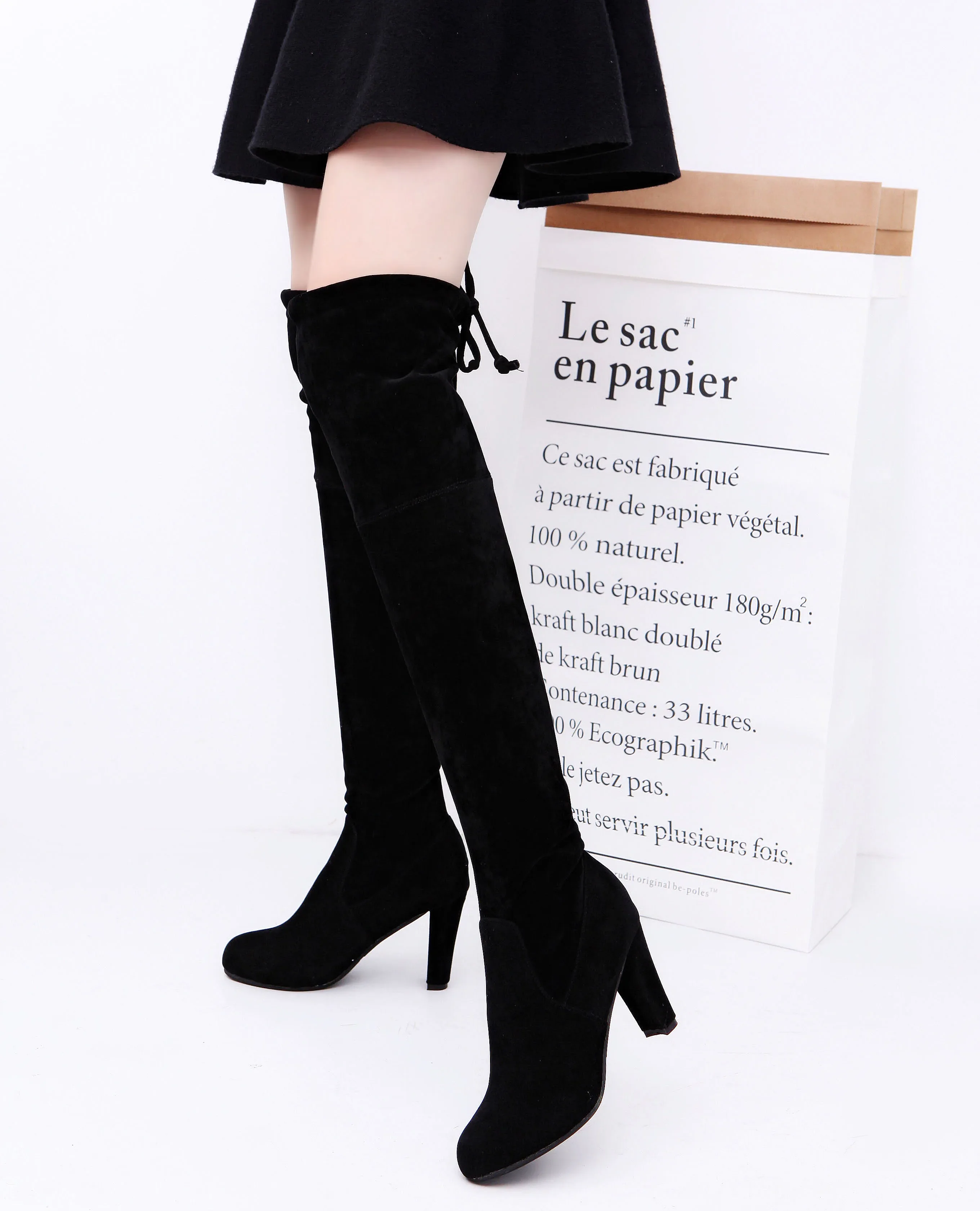 The over knee high heel boots feature a seamless, body-hugging silhouette crafted from soft knit material that adapts naturally to the shape of your legs. The elastic upper ensures a comfortable fit without slipping, while maintaining a chic, clean line. The pointed toe elongates the legs for a graceful look, and the mid-high block heel offers balance and comfort, even after hours of wear.