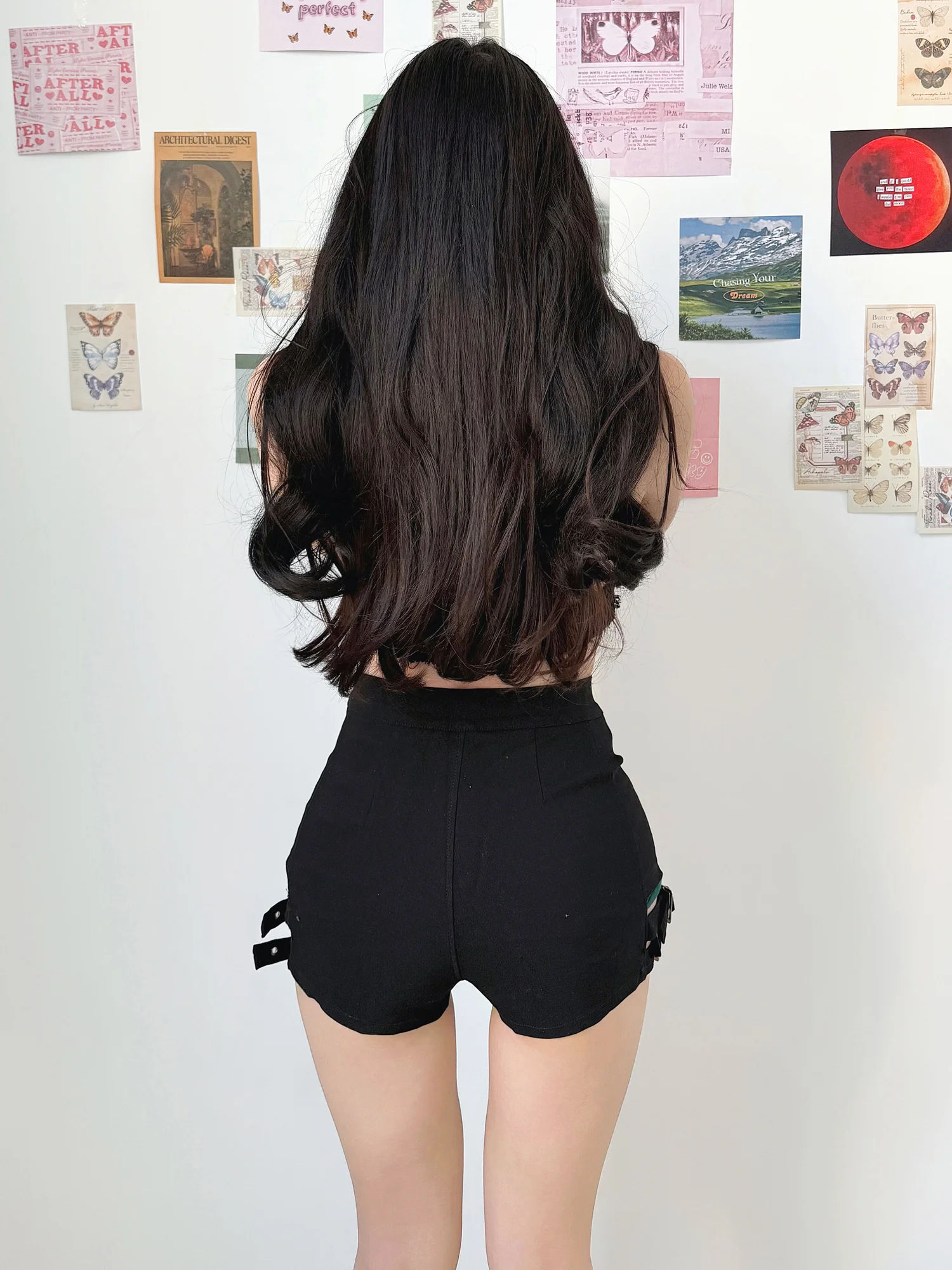 Unlike ordinary shorts, the black strappy high waist shorts embrace modern fashion trends that focus on individuality and bold design. The high-waist cut flatters the waistline, while the strappy details enhance your legs and add a provocative yet chic aesthetic. Whether styled with crop tops, corsets, or oversized shirts, these shorts create show-stopping outfits for any occasion.