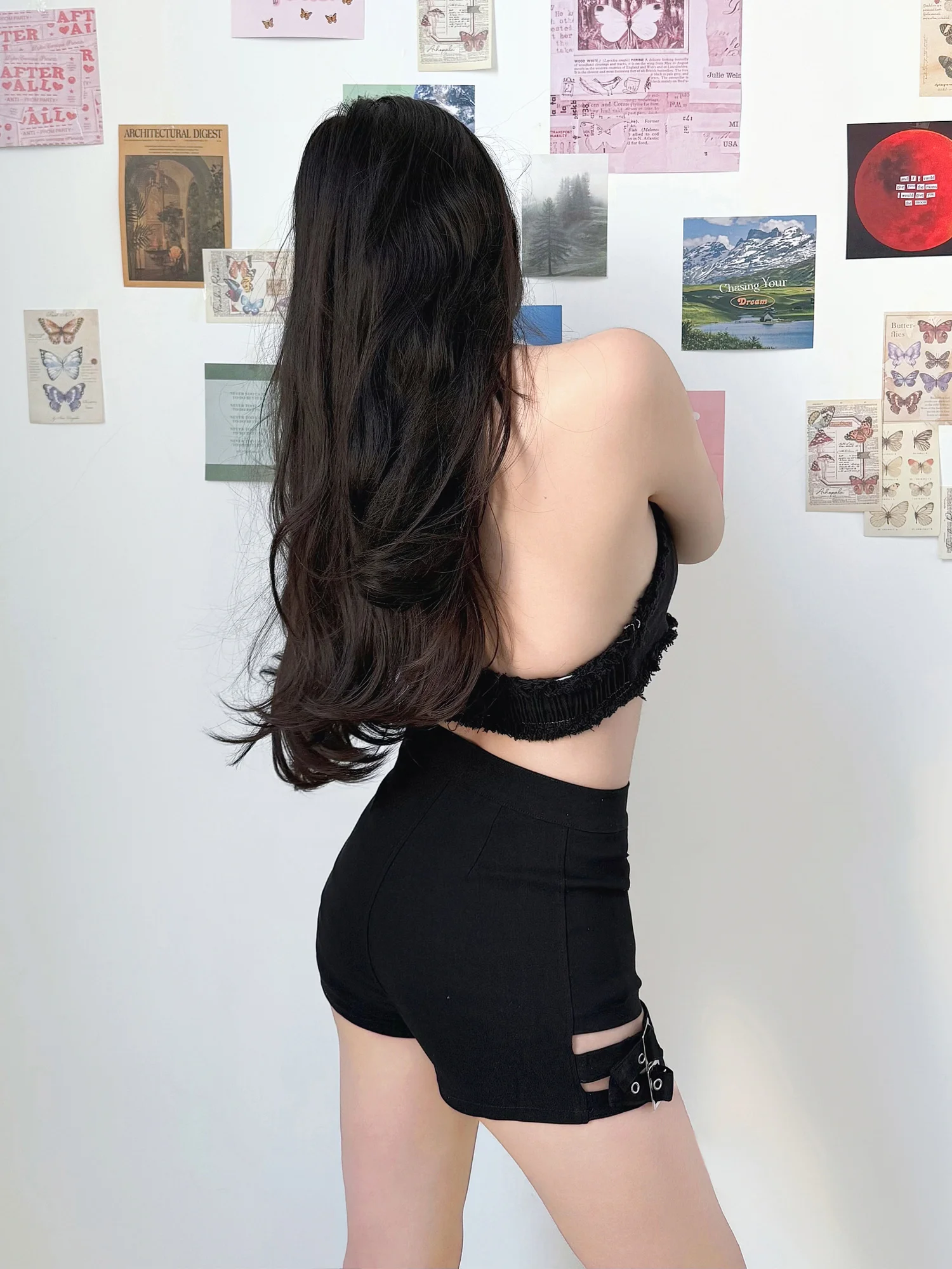 Confident, sexy, and unapologetically bold, the black strappy high waist shorts are more than just clothing – they are a symbol of individuality and fearless fashion. With their flattering fit, high-rise waist, and daring strappy design, they embody the spirit of women who want to embrace their confidence and make a statement with their style.