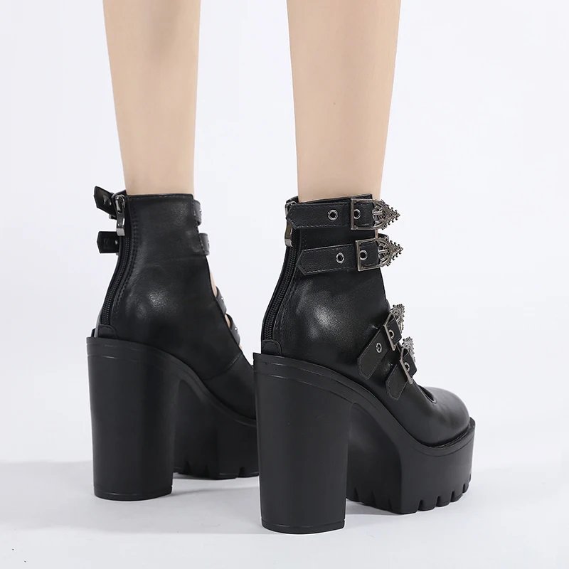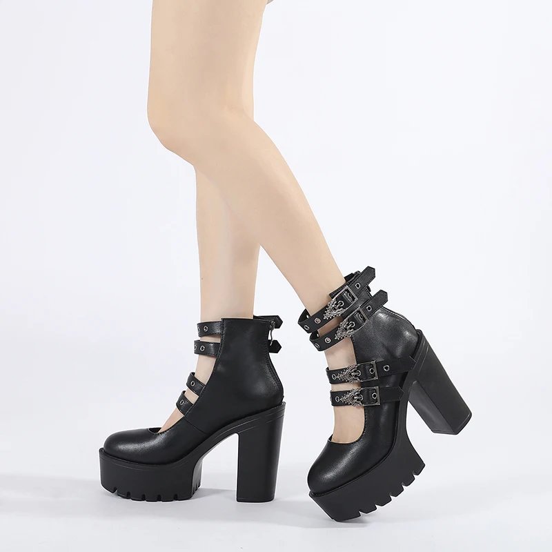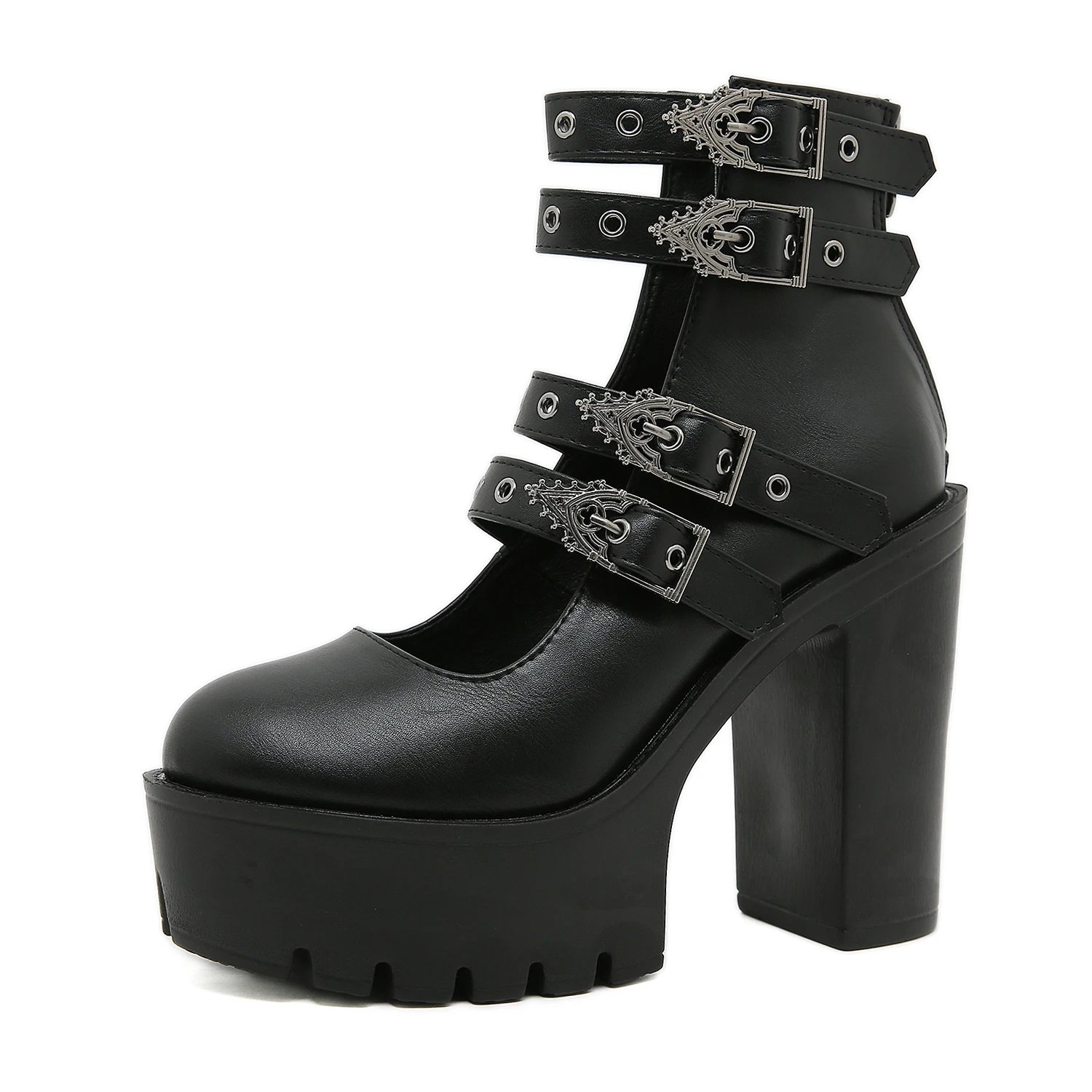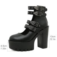 GOTH BLOCK HEELS FOR WOMEN – PLATFORM BUCKLE PUMPS
