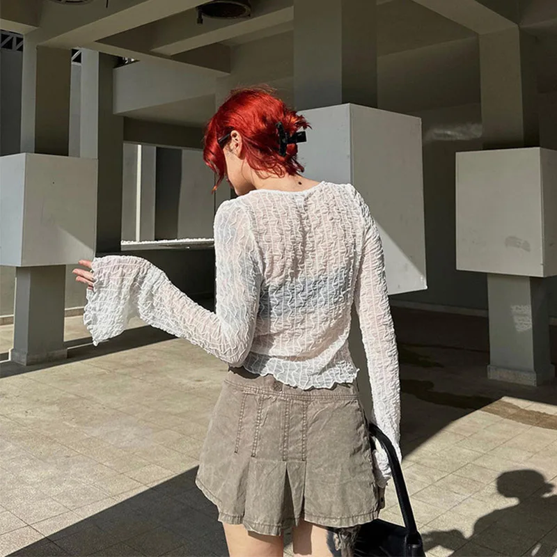 GOTHIC LACE-UP MESH CROP TOP LONG SLEEVE