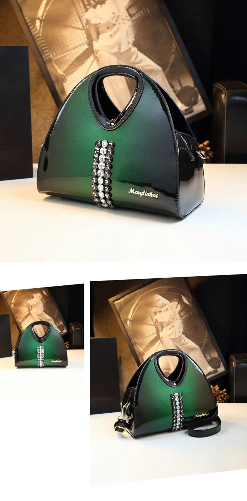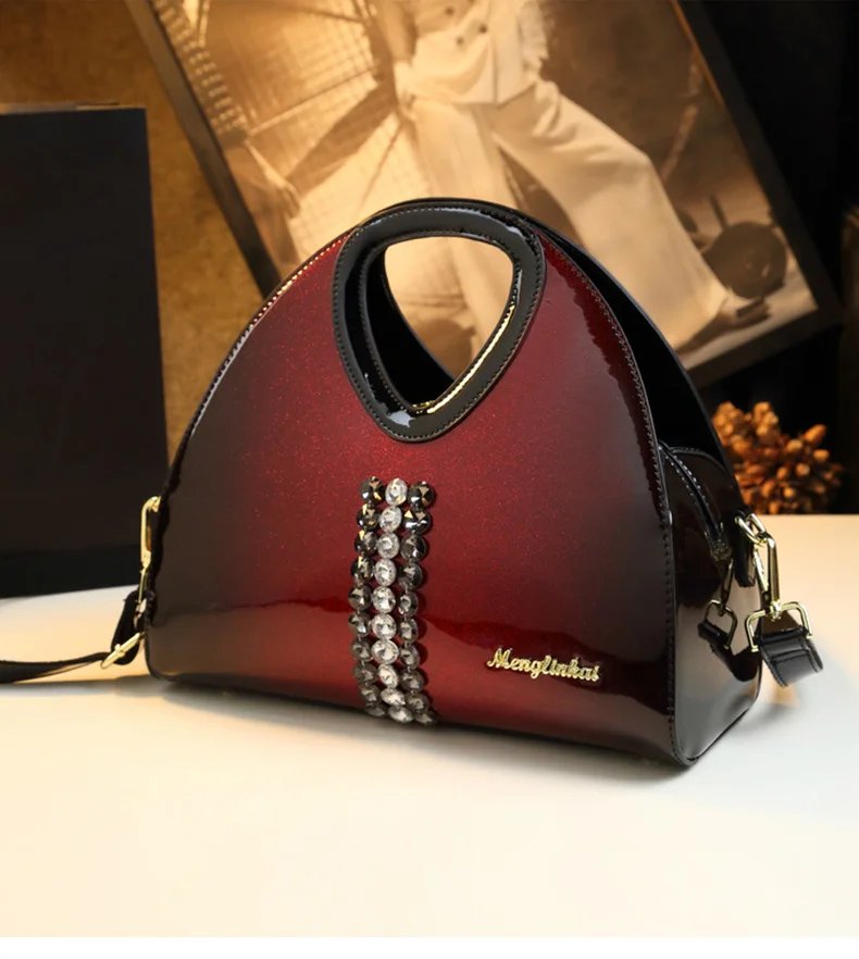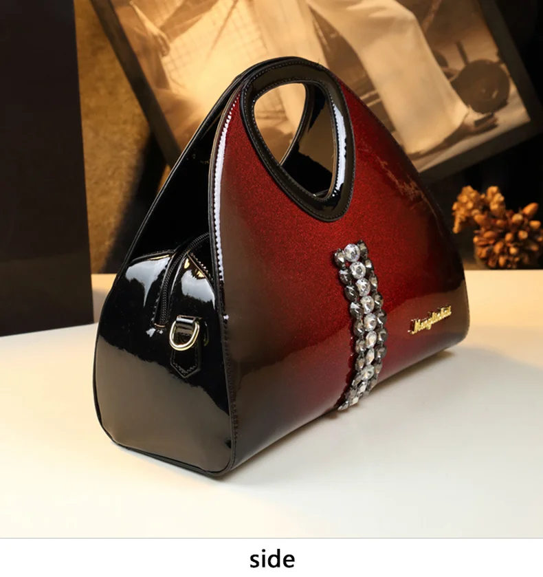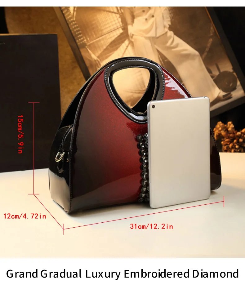 The gradient patent leather clutch bag for women is a statement of refined elegance and modern glamour. Designed with a glossy gradient finish, sparkling embellishments, and a chic silhouette, it combines fashion and functionality in one timeless piece. Its spacious interior provides ample room for daily essentials, while versatile carrying options allow it to transform from a stylish clutch to a shoulder or crossbody bag with ease. Perfect for evening parties, weddings, or sophisticated day looks, this clutch embodies confidence and sophistication, making it an essential accessory for women who appreciate luxury and versatility in every detail.