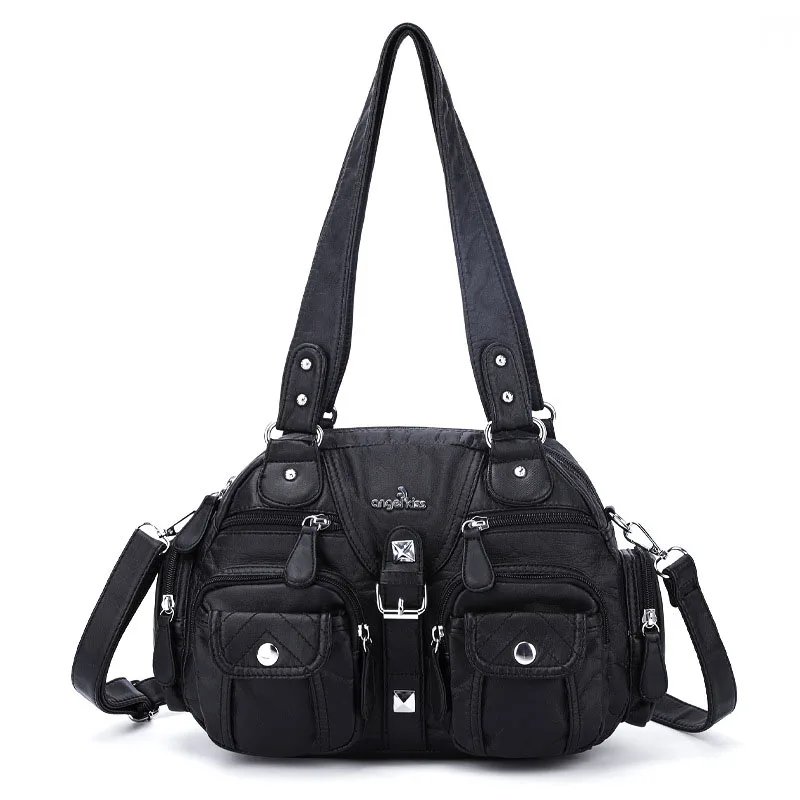 The women’s shoulder handbag with multiple pockets is a stylish essential that combines modern urban flair with practical everyday design. This chic handbag offers the perfect balance of functionality and fashion, allowing women to carry all their daily necessities with elegance and ease. Featuring a sleek silhouette, silver-tone details, and versatile carrying options, it is the ideal choice for women who want to stay organized without compromising on their personal style.