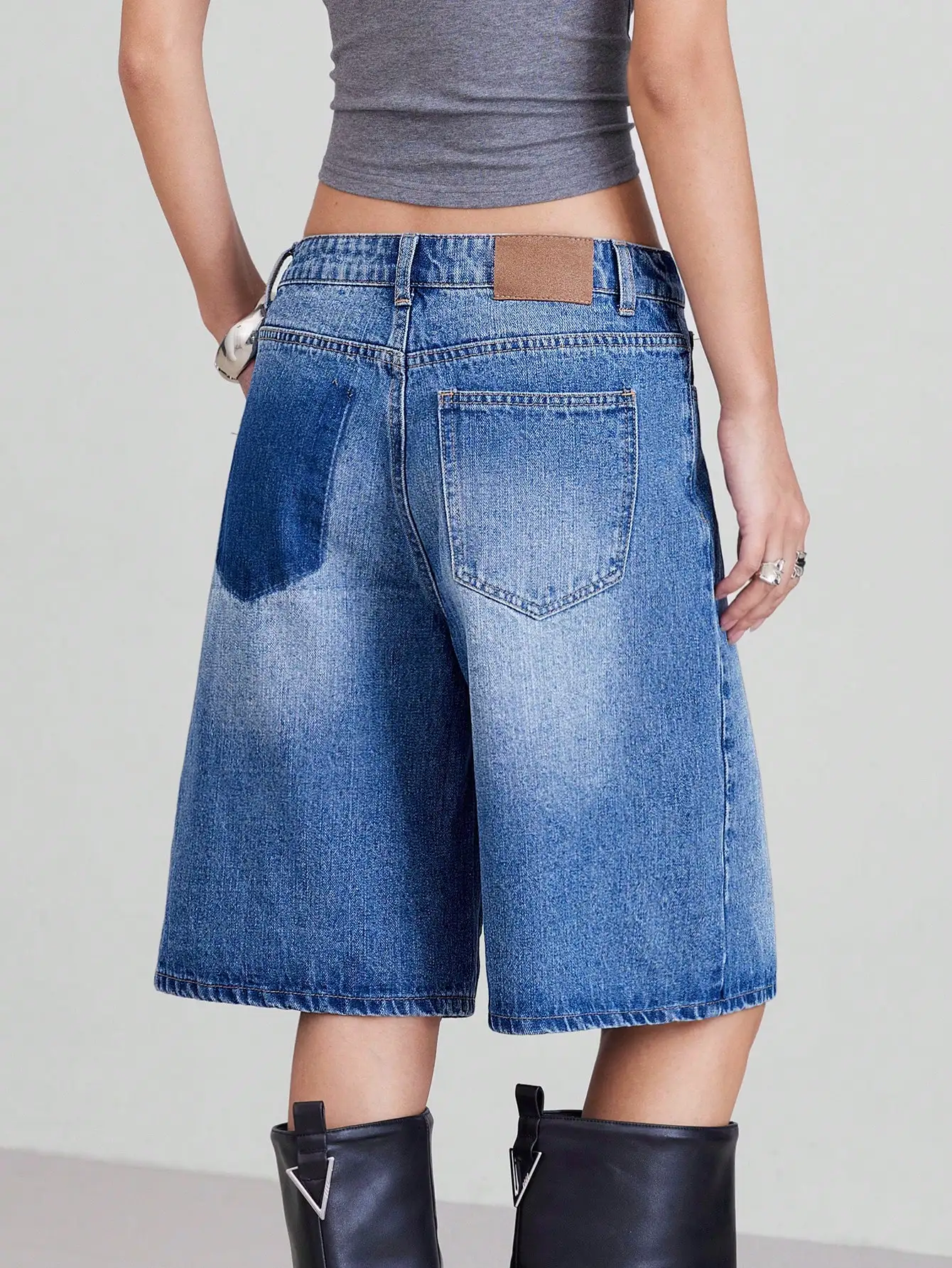 While inspired by utilitarian design, the high waist denim bermuda shorts women are unapologetically feminine. Their high waist and smooth contours create a sleek line that enhances the waist and elongates the legs. The longer cut adds a touch of sophistication, balancing comfort with elegance.