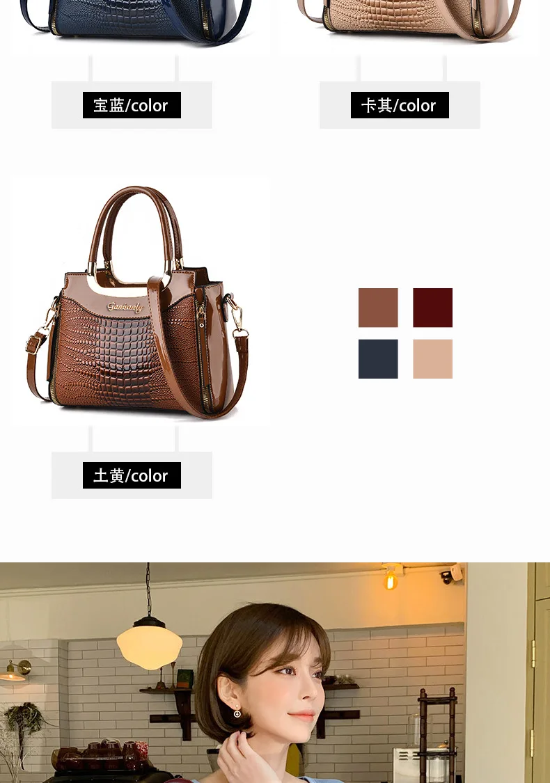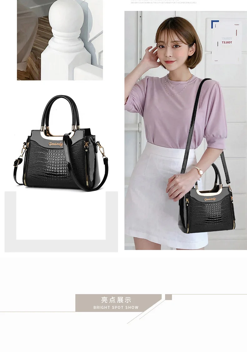 The crocodile pattern tote bag is more than just an accessory—it is a statement piece. With its glossy finish, reinforced handles, and spacious design, it provides comfort and convenience while maintaining a polished look. This handbag is crafted to be versatile, complementing both professional attire and casual chic outfits effortlessly.