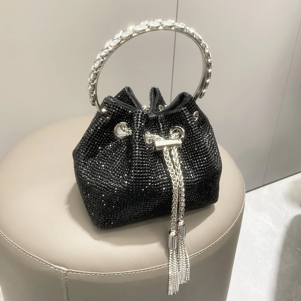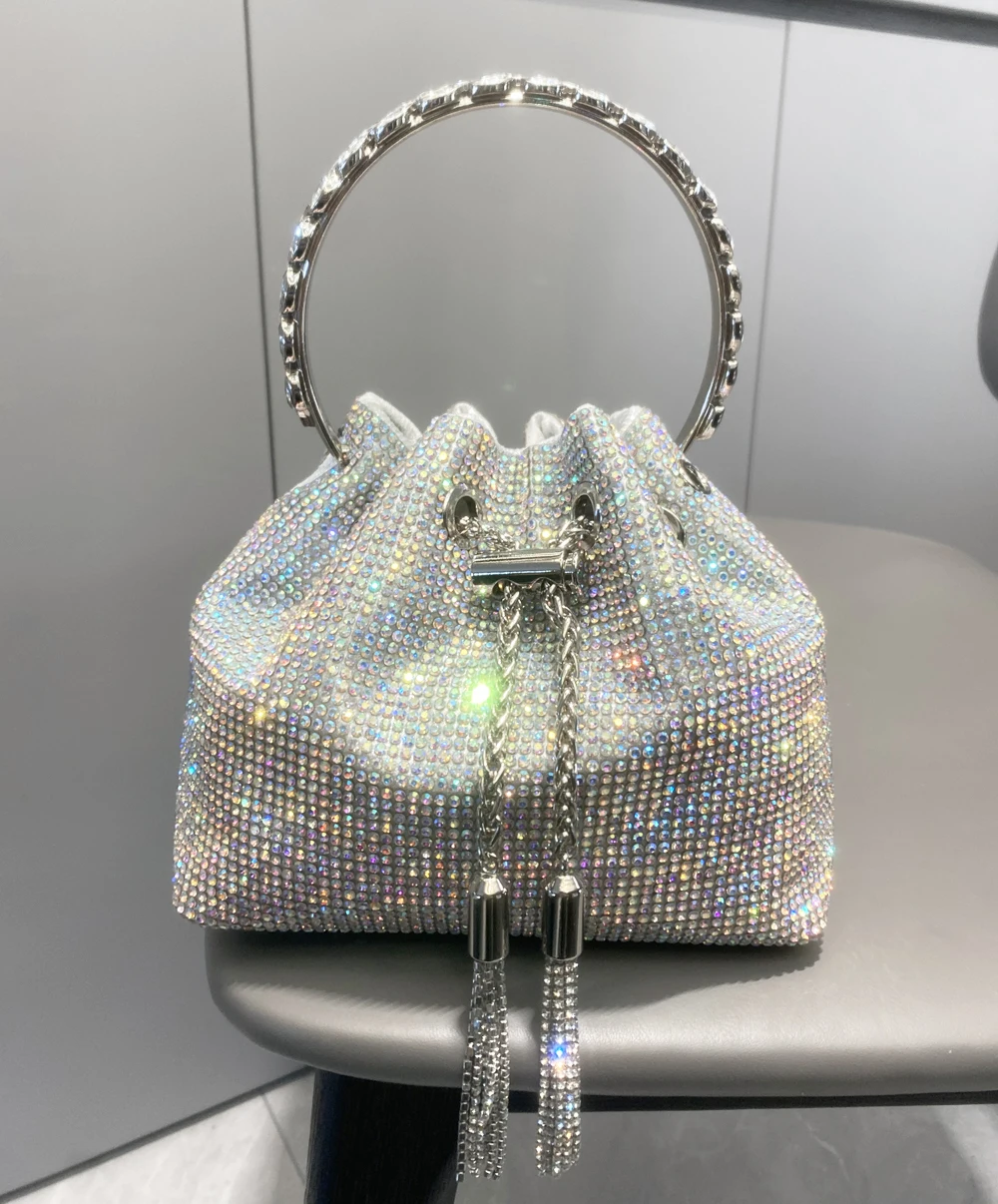 Inspired by the luminous energy of high-end fashion runways and couture evenings, this bag merges artistry with function. Its carefully designed structure combines the delicate shimmer of rhinestones with the practicality of a spacious yet compact bucket silhouette. Whether paired with a sleek cocktail dress, tailored jumpsuit, or a minimalist black ensemble, the Luxury Rhinestone Bucket Bag adds an irresistible dimension of sophistication and glamour.