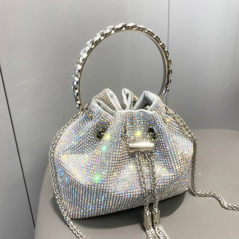 This luxury rhinestone bucket bag offers endless styling possibilities for women who love to stand out with sophistication. Designed to transcend seasons and occasions, it can complement a variety of fashion moods—minimalist, avant-garde, romantic, or bold. It effortlessly adapts to different wardrobe aesthetics, transforming from a chic evening clutch to a trendy daily companion with the switch of a strap.