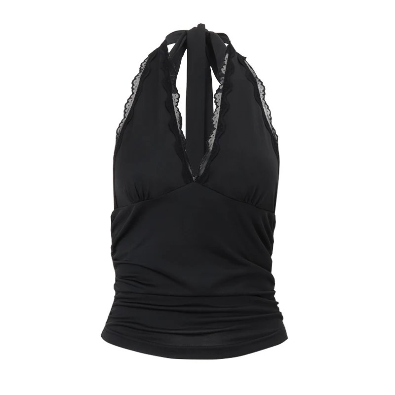 Chic, confident, and irresistibly stylish—the sexy lace halter backless crop top is the ultimate piece for women who love to blend casual edge with bold femininity. Featuring a plunging V-neckline adorned with delicate lace trim, this halter top delivers standout style from every angle. The sleek silhouette hugs the figure, offering a flattering fit that accentuates your natural curves without compromising on comfort. Its striking backless design adds a daring twist, making it perfect for warm summer nights, urban adventures, or effortless day-to-night transitions.