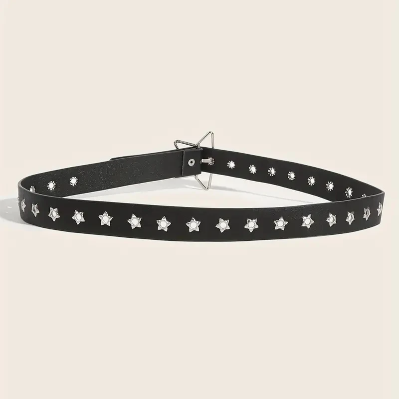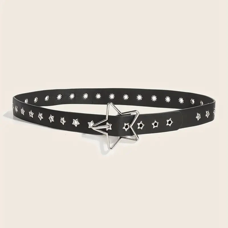 Whether styled for girly glam or edgy punk chic, the Star Buckle Belt becomes a standout piece in your collection that turns heads while complementing your outfit.