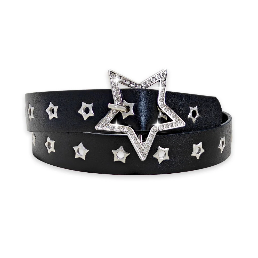 STAR BUCKLE BELT PUNK Y2K BLACK STRASS FASHION ACCESSORY