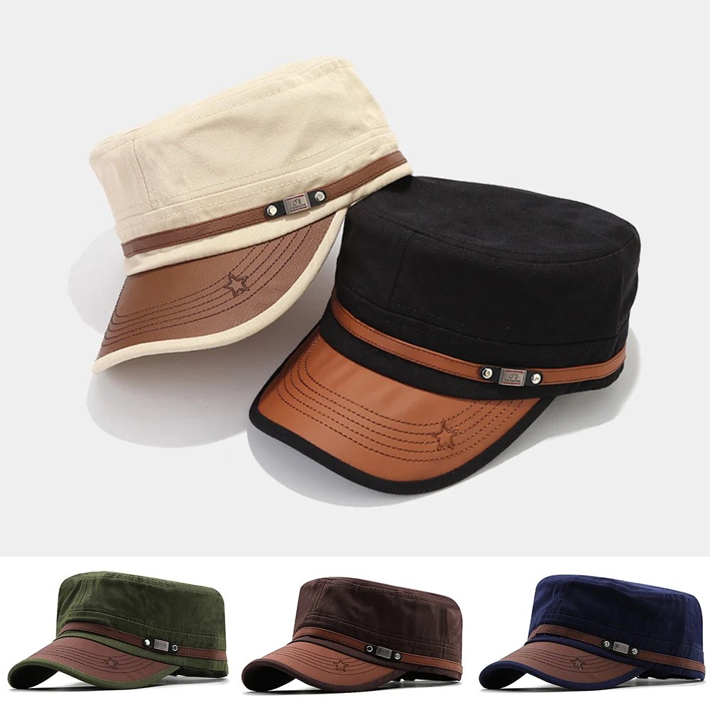 Vintage Military Cadet Hat – Casual Unisex Flat Top Cap