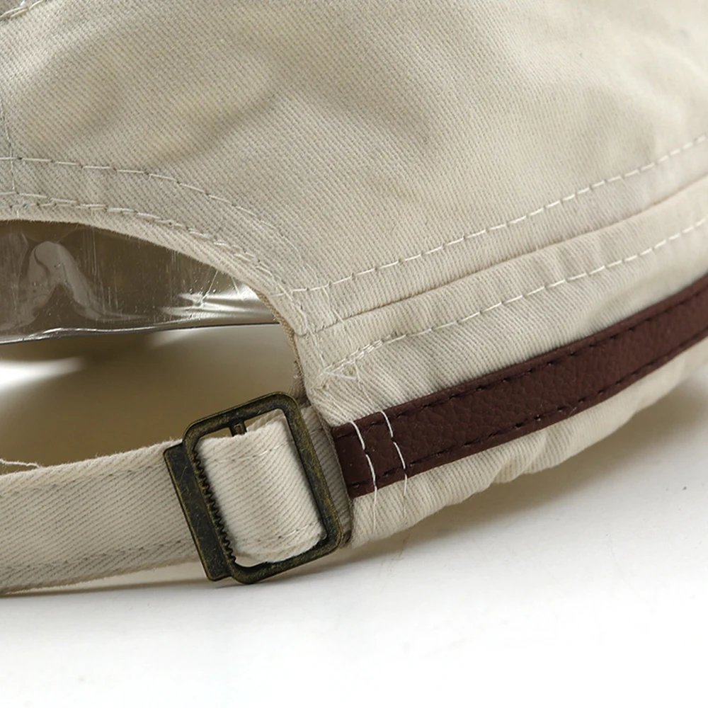 The Military Cadet Hat is made from durable, high-quality cotton, offering a breathable and skin-friendly sensation throughout the day. Cotton ensures a comfortable wearing experience by allowing airflow, making it an excellent choice for warm summer days and layered autumn styles. The inner lining is soft to the touch, preventing irritation or discomfort during extended wear.