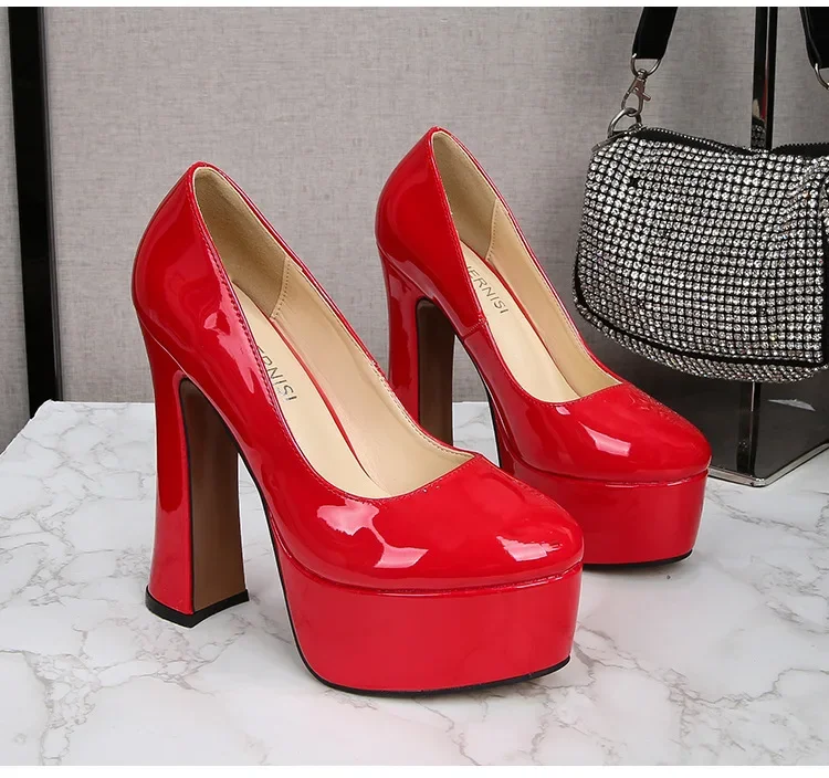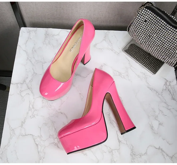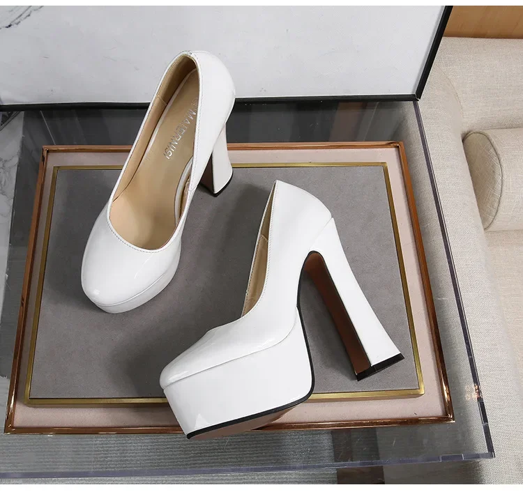 These patent leather platform heels are made from premium synthetic patent leather that combines luster, flexibility, and long-lasting structure. The material’s high-shine finish exudes an air of elegance, reflecting light with a rich, mirror-like quality that ensures you stand out in every crowd. The leather’s sleek surface is easy to clean and maintain, making it ideal for nights out and professional events alike.