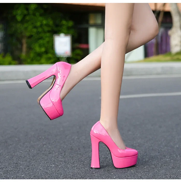 The women black patent platform high heels are remarkably versatile, adapting effortlessly to both elegant and daring outfits. Their timeless shape and glossy finish make them a wardrobe essential for anyone who loves to blend sophistication with confidence.