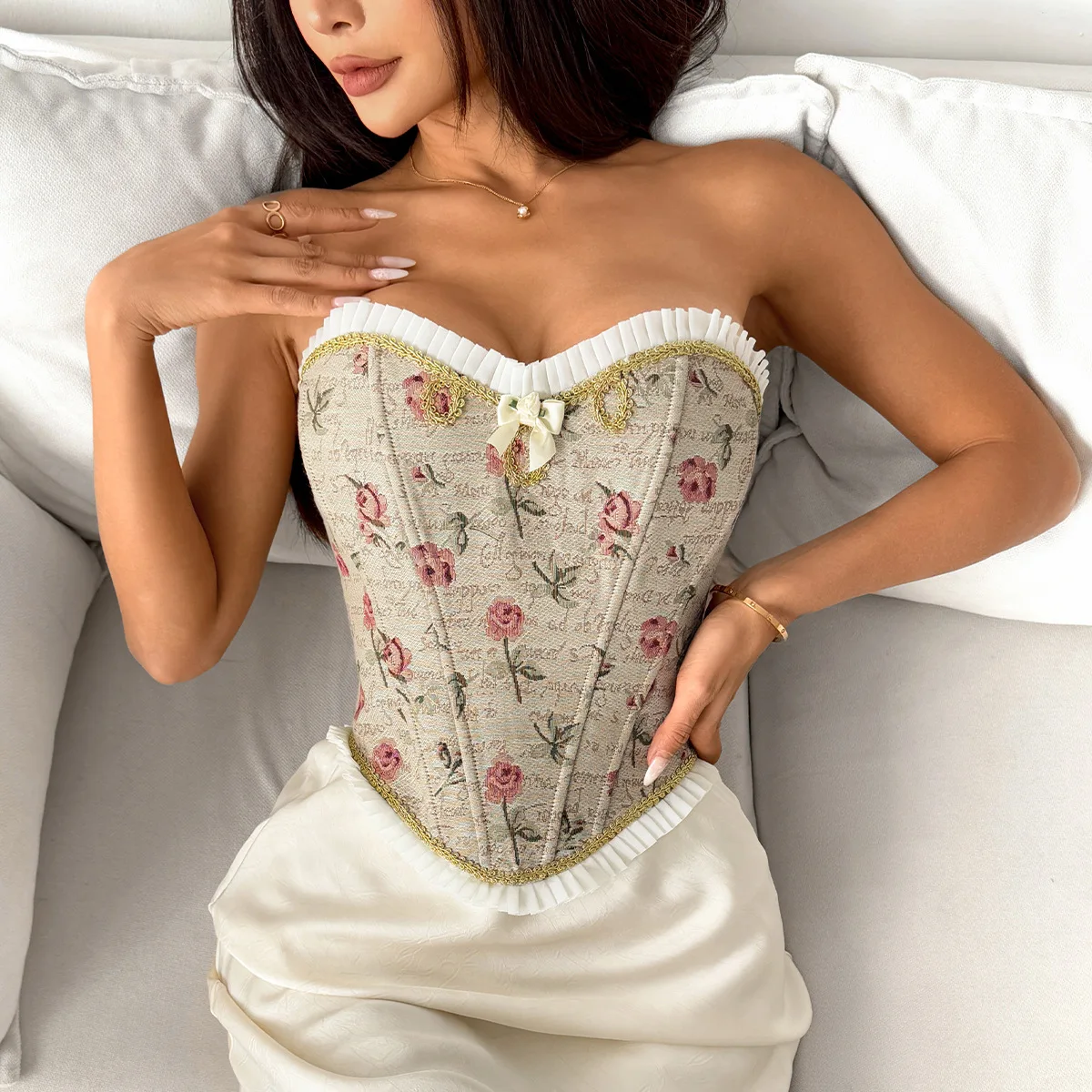 The top’s structured panels provide gentle compression, giving you a defined hourglass figure without the stiffness of traditional corsetry. The surface textures—ranging from floral tapestries to satin sheen—create a tactile elegance that feels as luxurious as it looks. Perfect for warm summer nights or layering beneath a blazer for transitional weather, this top is an all-season statement.