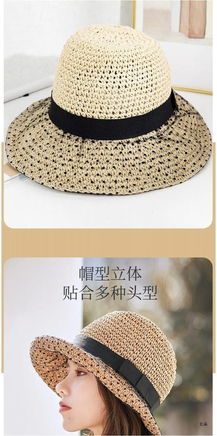 This hat captures the spirit of coastal luxury—a piece that feels equally at home on the shores of the Mediterranean as it does during a city afternoon under the sun. With its structured yet soft brim, elegant black ribbon accent, and delicate lace gauze veil, it exudes understated glamour. Whether you are traveling, lounging, or attending a summer event, the women summer straw hat completes your look with effortless refinement.