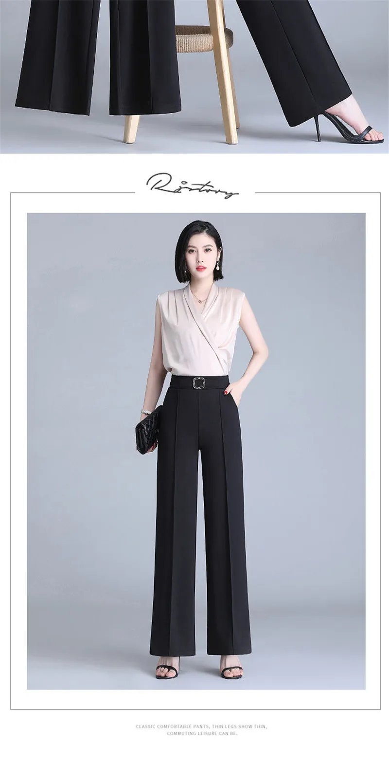 From slim to curvy figures, the thoughtful design ensures a universally flattering effect. The straight lines visually lengthen the body, while the wide leg drape adds movement, creating a bold yet refined presence. These pants are the definition of contemporary tailoring blended with everyday wearability.