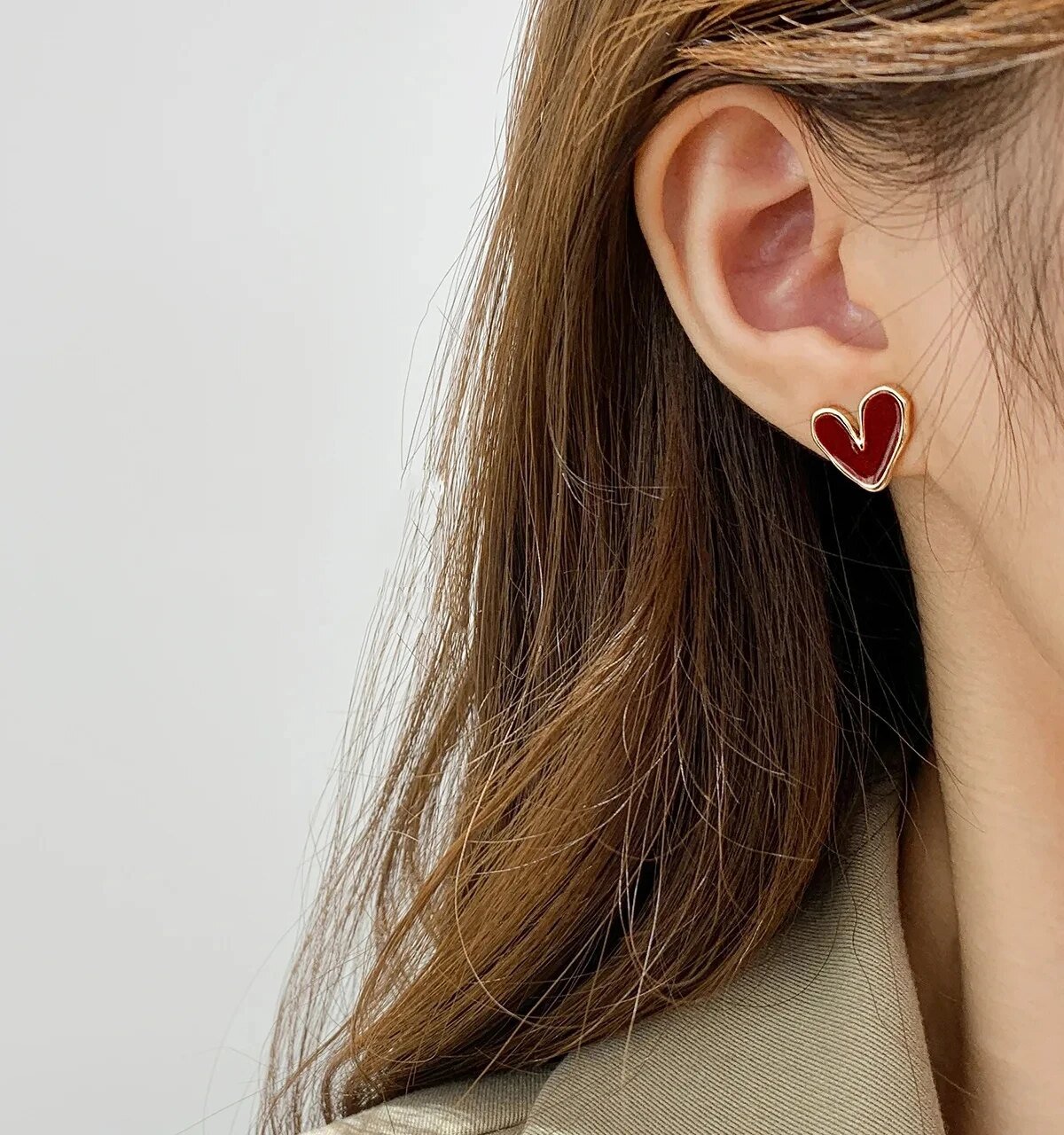 Red Heart Stud Earrings – Romantic Gold Outline Design
